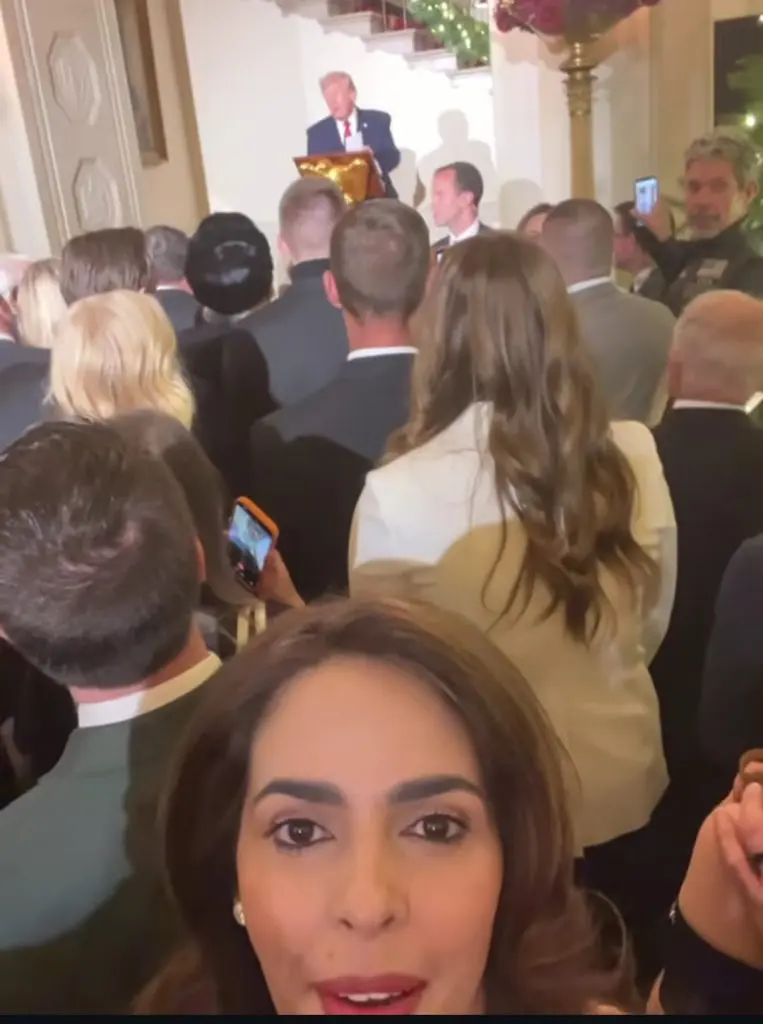 મલ્લિકા શેરાવતને આ હાઈ-પ્રોફાઈલ ક્રિસમસ ડિનર માટે ખાસ કરીને અમેરિકી રાષ્ટ્રપતિ ડોનાલ્ડ ટ્રમ્પ દ્વારા આમંત્રિત કરવામાં આવી હતી. અભિનેત્રીએ આ ખાસ ઇવેન્ટની તસવીરો શેર કરી છે, જેમાં ડોનાલ્ડ ટ્રમ્પ પણ નજરે પડે છે. આ ઉપરાંત, મલ્લિકાએ તેના ફેન્સ સાથે ડિનરના ઓફિશિયલ ઇન્વિટેશન કાર્ડનો ફોટો પણ શેર કર્યો છે, જે તેની આ મુલાકાતની ભવ્યતા દર્શાવે છે.