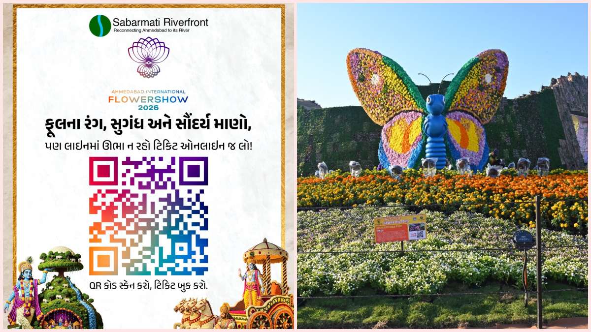 Ahmedabad Flower Show Digital Tickets: અમદાવાદ મ્યુનિસિપલ કોર્પોરેશન (AMC) દ્વારા નવા વર્ષની ભેટ રૂપે સાબરમતી રિવરફ્રન્ટ પર 1 જાન્યુઆરીથી ભવ્ય 'ફ્લાવર શો-2026'નું આયોજન કરવામાં આવ્યું છે. આ વર્ષે ફ્લાવર શોને વધુ આકર્ષક બનાવવા માટે અનેક નવીન ફલોરલ પ્રતિકૃતિઓ તૈયાર કરવામાં આવી છે. મ્યુનિસિપલ કોર્પોરેશન દ્વારા મુલાકાતીઓની સરળતા માટે ટિકિટના દરો, ઓનલાઇન બુકિંગ પ્રક્રિયા અને પ્રવેશના નિયમોની સત્તાવાર જાહેરાત કરી દેવામાં આવી છે.