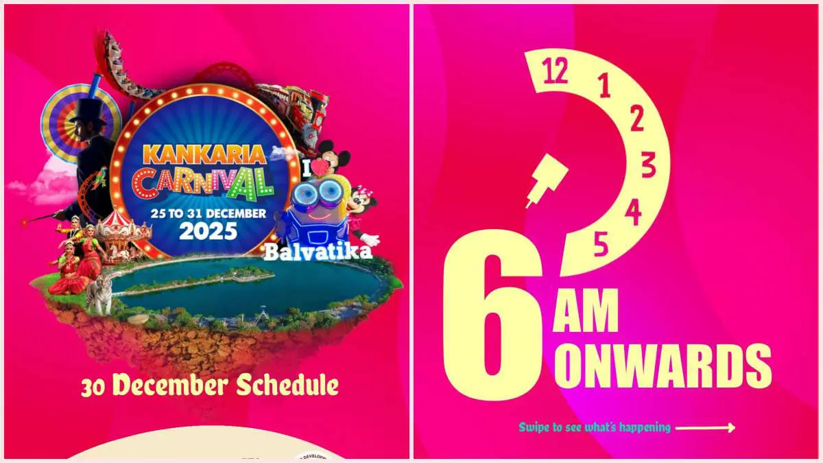 "Amdavad Kankaria Carnival 2025 by AMC under Amdavad festival, schedule for 30th December 2025. Enjoy a day full of cultural performances, workshops and live shows across all stages at Kankaria. Entry is free for all. Visit with family and friends and celebrate together.