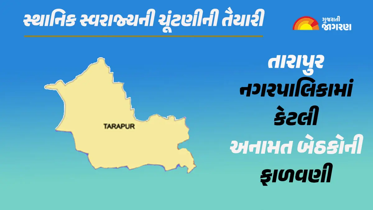 Tarapur Nagarpalika Election: ગુજરાત રાજ્ય ચૂંટણી આયોગે આણંદ જિલ્લાની તારાપુર નગરપાલિકા(Tarapur Nagarpalika) માટે વોર્ડ સીમાંકન અને અનામત બેઠકોની અંતિમ ફાળવણી જાહેર કરી છે. આ નિર્ણય આગામી સામાન્ય ચૂંટણીઓ(Gujarat Local Body Election)માં લાગુ પડશે. વર્ષ 2011ની વસતી ગણતરી મુજબ, તારાપુર નગરપાલિકા (Tarapur Nagarpalika Election)ની કુલ વસતી 17994 છે. નગરપાલિકામાં કુલ 6 વોર્ડ અને 24 બેઠકો નક્કી કરવામાં આવી છે. આ બેઠકોમાંથી કુલ 12 બેઠકો મહિલાઓ માટે અનામત રાખવામાં આવી છે. કુલ 44 બેઠકો પૈકી 31બેઠકો વિવિધ અનામત વર્ગો માટે નિર્ધારિત કરાઈ છે, જ્યારે 13 બેઠકો સામાન્ય (બિનઅનામત) રહેશે.