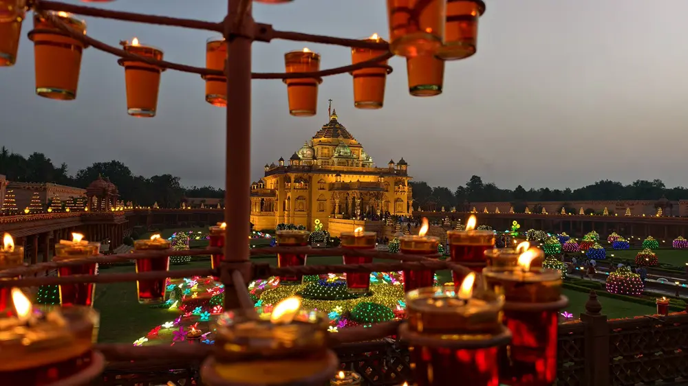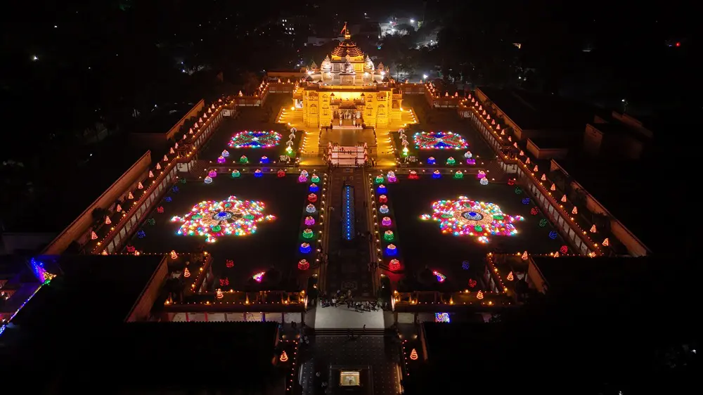 સનાતન ભારતીય સંસ્કૃતિની પવિત્ર ભાવનાઓ વહાવતું સ્વામિનારાયણ અક્ષરધામ પરિસર સતત 33 વર્ષથી 10,000 દીવડાઓની હારમાળા પ્રગટાવી દીપાવલી પર્વના સંદેશને જન-જનના માનસ પટ પર અંકિત કરે છે.