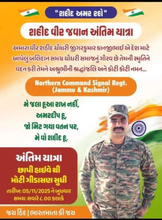 બનાસકાંઠા જિલ્લાના વડગામના ગીડાસણ ગામના વતની જીગ્નેશ ચૌધરી છેલ્લા 12 વર્ષથી ભારતીય સૈન્યમાં ફરજ બજાવતા હતા. તાજેતરમાં જમ્મુના ઉધમપુરમાં તેમની ડ્યુટી હતી. રવિવારે રજા મળ્યા બાદ તેઓ ફિરોજપુર કેન્ટથી જમ્મુ તાવી-સાબરમતી એક્સપ્રેસ ટ્રેનમાં પોતાના વતન જઈ રહ્યા હતા.