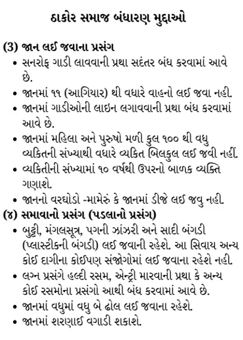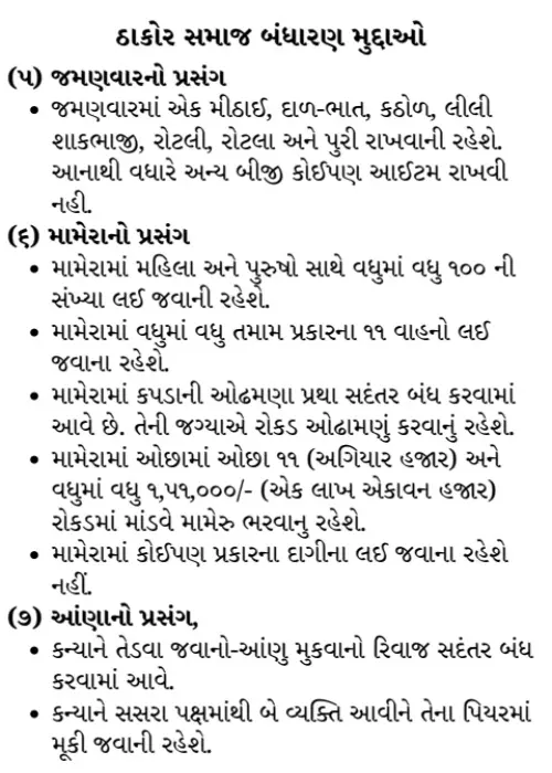 - તમામ પ્રકારના પ્રસંગોમાં ઓઢામણા પ્રથા બંધ, લગ્ન મૂકવાની પ્રથા સદંતર બંધ