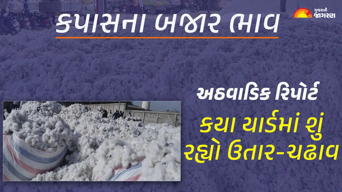 Cotton Mandi Price weekly Trends | Magfali Price | આજના કપાસ ના ભાવ | કપાસ નો ભાવ આજનો | કપાસ ભાવ આજના | કપાસ ભાવ : ગુજરાતમાં 51 યાર્ડમાં શનિવારે પૂરા થયેલા અઠવાડિયા દરમિયાન ગયા અઠવાડિયાની તુલનામાં ઉતાર-ચઢાવ જોવા મળ્યો હતો. કેન્દ્રીય કૃષિ અને ખેડૂત કલ્યાણ મંત્રાલયની કોમોડિટીની વેબસાઇટમાં પ્રાઇસ ટ્રેન્ડ રિપોર્ટ્સ આપવામાં આવે છે. જેમાં કપાસના બજાર ભાવના અઠવાડિક ટ્રેન્ડ રિપોર્ટમાં કયા માર્કેટ યાર્ડમાં એવરેજ અઠવાડિક ભાવમાં ગયા અઠવાડિયાની તુલનામાં કેવા ઉતાર-ચઢાવ રહ્યાં તે જણાવવામાં આવ્યું છે. અઠવાડિક ટ્રેન્ડ રિપોર્ટની તમામ વિગતો એ વેબસાઈટ પરથી લેવામાં આવી છે.