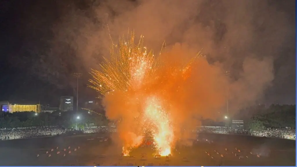 આ ભવ્ય નજારાને નિહાળવા માટે લાખોની સંખ્યામાં રાજકોટવાસીઓ ઉમટી પડ્યા હતા, જેના કારણે ગ્રાઉન્ડ જનમેદનીથી છલકાઈ ગયું હતું. ઉલ્લેખનીય છે કે, રાજકોટમાં માત્ર આતશબાજી જ નહીં, પરંતુ રેસકોર્સ રિંગરોડ પર ભવ્ય લાઇટિંગ, સાઉન્ડ અને લેશર શો સહિતના અનેક કાર્યક્રમોનું આયોજન કરવામાં આવ્યું છે.