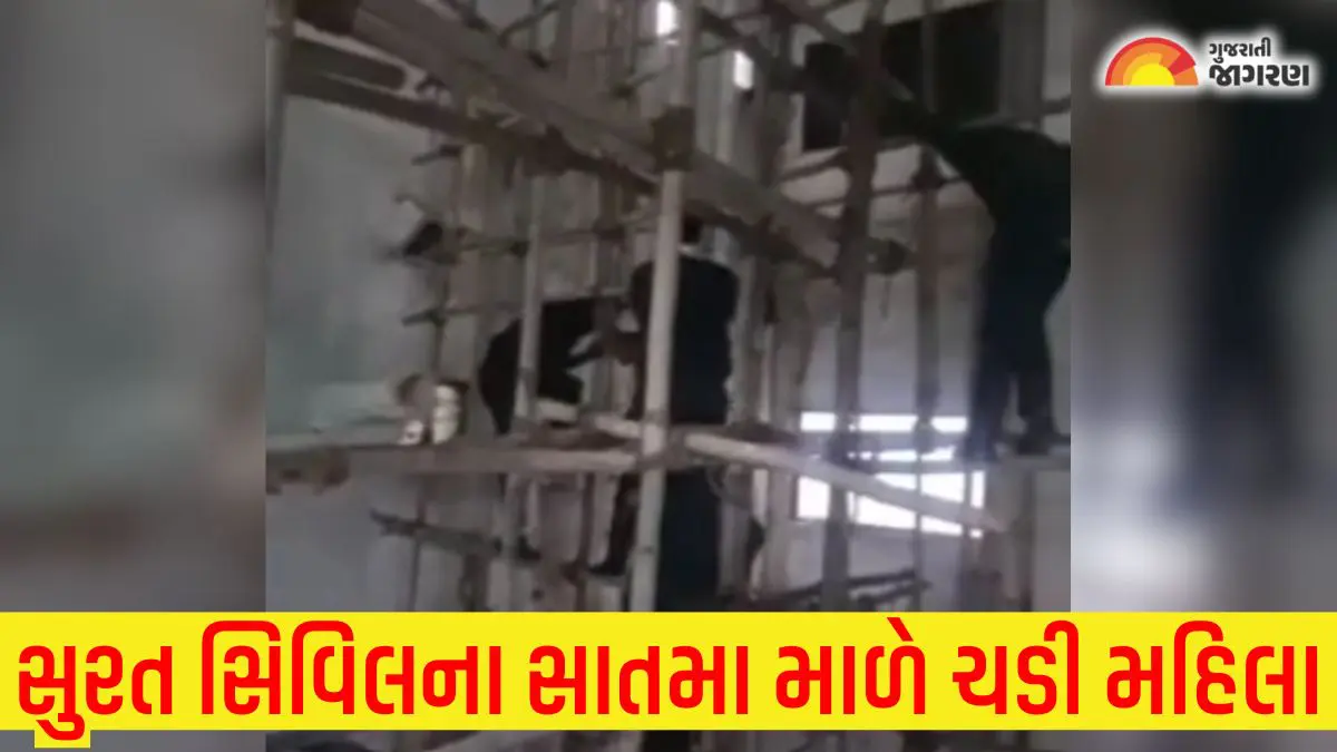 Surat Woman suicide attempts: સુરત સિવિલ હોસ્પિટલમાં આજે રવિવારે એક ગંભીર બનાવ બન્યો. એક મહિલા કોવિડ બિલ્ડિંગના સાતમા માળે લિફ્ટના કામ માટે બાંધેલા વાંસના પાલખ પર ચડી ગઈ હતી. આ બનાવથી લોકોના જીવ અધ્ધર થઈ ગયા હતા. તાત્કાલિક ફાયર વિભાગની ટીમને જાણ કરવામાં આવી હતી.