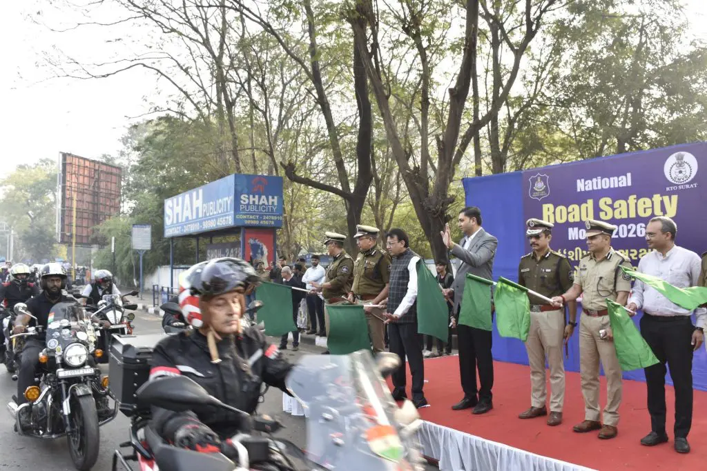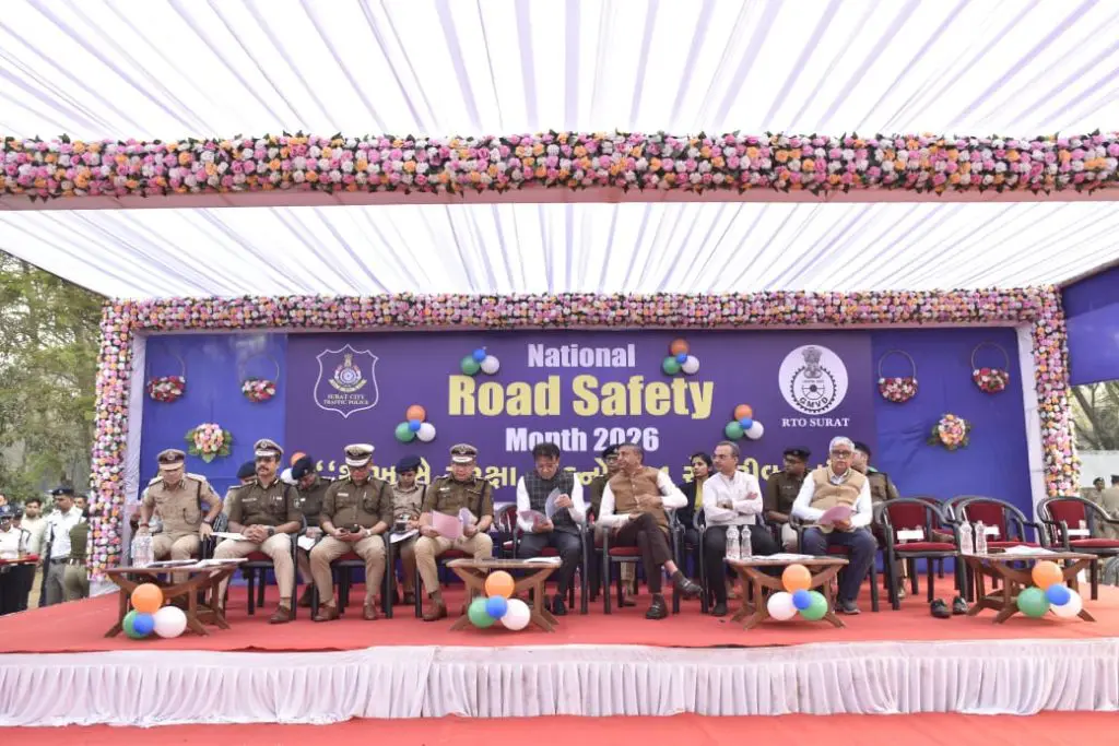 Surat News: નેશનલ રોડ સેફટી ઓથોરિટી પ્રેરિત અને સુરત પોલીસ આયોજિત ‘રાષ્ટ્રીય માર્ગ સલામતી માસ-2026’ની ઉજવણીનો શહેરના પોલીસ કમિશનર અનુપમસિંહ ગહલૌતે પોલીસ પરેડ ગ્રાઉન્ડ ખાતેથી વિધિવત પ્રારંભ કરાવ્યો હતો. આ પ્રસંગે શહેરના મેયર દક્ષેશભાઈ માવાણી સહિત ઉચ્ચ પોલીસ અધિકારીઓ અને આરટીઓ (RTO) ના પદાધિકારીઓ ઉપસ્થિત રહ્યા હતા.