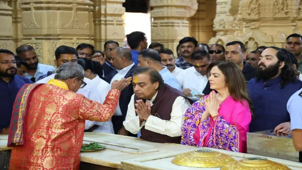 નૂતન વર્ષના મંગલમય પ્રારંભે સોમનાથ મંદિરમાં અંબાણી પરિવારે મહાદેવને ગંગાજલ અભિષેક કરી, પૂજા સામગ્રી અર્પણ કરી હતી. આ પુનિત અવસરે તેઓએ વેદોક્ત મંત્રોચ્ચાર સાથે સોમનાથ દાદાની કુલસોમેશ્વર મહા પૂજા કરી હતી. આ ઉપરાંત, 'ધ્વજા પૂજા' અને ભક્તોમાં જેનું વિશેષ મહત્વ છે તેવી 'પાઘ પૂજા' કરીને રાષ્ટ્રની સુખ, શાંતિ અને સમૃદ્ધિ માટે પ્રાર્થના કરી હતી.