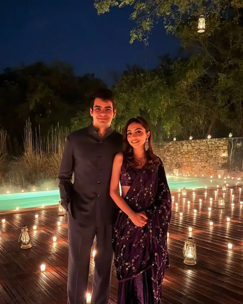 રાજસ્થાનના રણથંભોરમાં એક ખાનગી સમારોહમાં આ બંનેએ સગાઈ કરી છે. શેર કરાયેલા પહેલા ફોટામાં, રેહાન અને અવિવા સાંજના પ્રકાશમાં પરંપરાગત પોશાકમાં સાથે જોવા મળે છે. ફોટામાં રેહાને ઘેરા રંગની શેરવાની પહેરી હતી, જ્યારે અવિવા સાડીમાં જોવા મળી હતી.