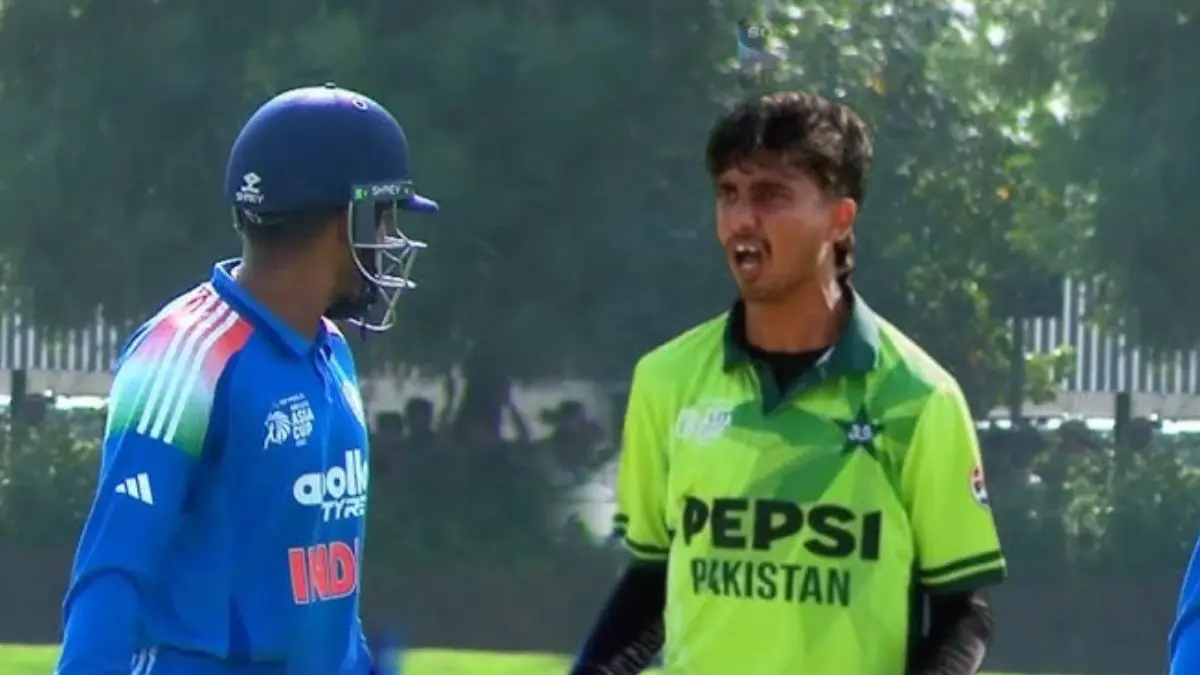 અલી રઝા પાકિસ્તાન માટે ત્રીજી ઓવર ફેંકી રહ્યા હતા. આ દરમિયાન તેણે બીજા બોલે ભારતીય કેપ્ટન આયુષ મ્હાત્રેને પેવેલિયન પાછો મોકલ્યો. આયુષે મિડ-ઓફ તરફ શોટ રમવાનો પ્રયાસ કર્યો પરંતુ કેચ આઉટ થયો. ત્યારબાદ પાકિસ્તાની બોલરે આયુષને આઉટ કર્યા પછી ઉજવણી કરવાનું શરૂ કર્યું. આ દરમિયાન, પાકિસ્તાની ખેલાડીએ આયુષને સાથે દુર્વ્યવહાર કર્યો, જેના કારણે હોબાળો મચી ગયો. પેવેલિયન પરત ફરતી વખતે આયુષ દુર્વ્યવહાર બાદ પાકિસ્તાની ખેલાડી તરફ પાછો ફરવા લાગ્યો. આ પછી પરિસ્થિતિ વધુ વણસી ગઈ. આખી ઘટનાનો એક વિડિયો સોશિયલ મીડિયા પર વાયરલ થઈ રહ્યો છે.
