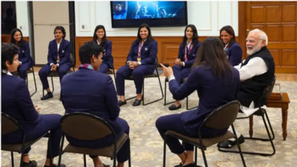 પછી સ્નેહ રાણાએ કહ્યું- જ્યારે કોઈ મહત્વપૂર્ણ મેચ હોય છે, ત્યારે મને ગઈકાલે ઊંઘ નથી આવતી. આપણે ફક્ત તેના વિશે જ વાત કરી રહ્યા હતા. પીએમ મોદીએ મજાકમાં કહ્યું- પરીક્ષા આપતા બાળકો માટે પણ આવું જ છે. સ્નેહા અને રેણુકા હસી પડ્યા. પછી મંધાનાએ પીએમ મોદીને પૂછ્યું- તમને આટલું બધું કેવી રીતે યાદ છે? પીએમએ જવાબ આપ્યો- હું વર્તમાનમાં જીવું છું.