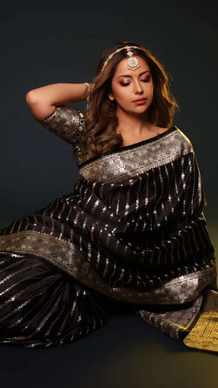 અદભૂત બ્લેક સાટીન સિલ્ક બનારસી સાડીમાં અવિકા ગોર ખૂબજ સુંદર લાગી રહી છે