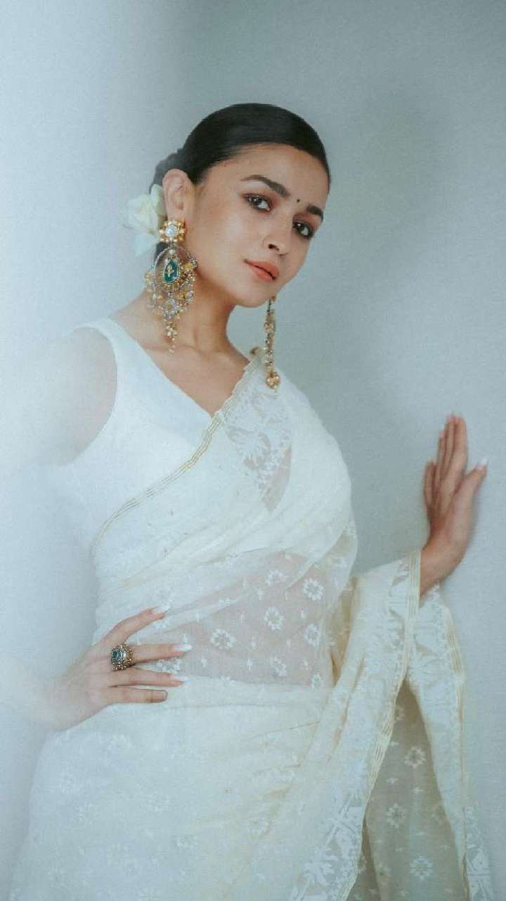 અભિનેત્રી આલિયા ભટ્ટ ઓફ વ્હાઈટ સાડીમાં અપ્સરા લાગી રહી છે