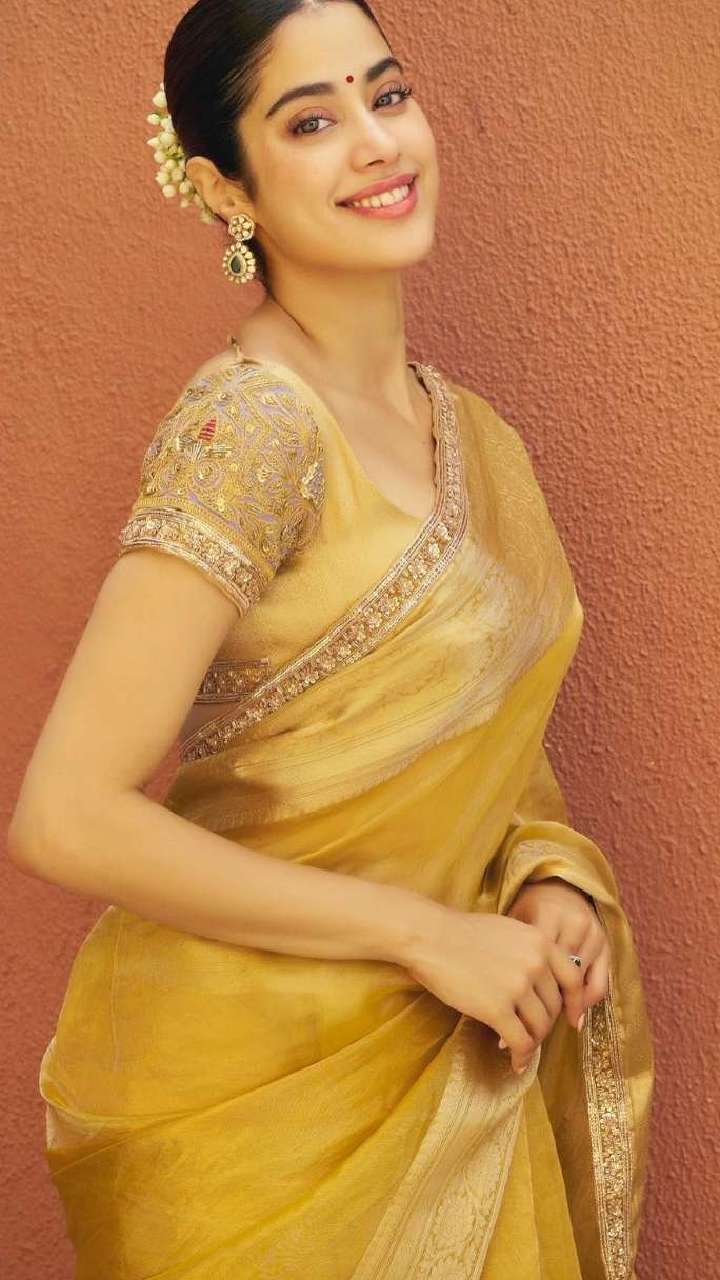 રેડ કલરની પ્લેન સાડીમાં જાહ્નવી કપૂર ગોર્જિયસ લાગી રહી છે