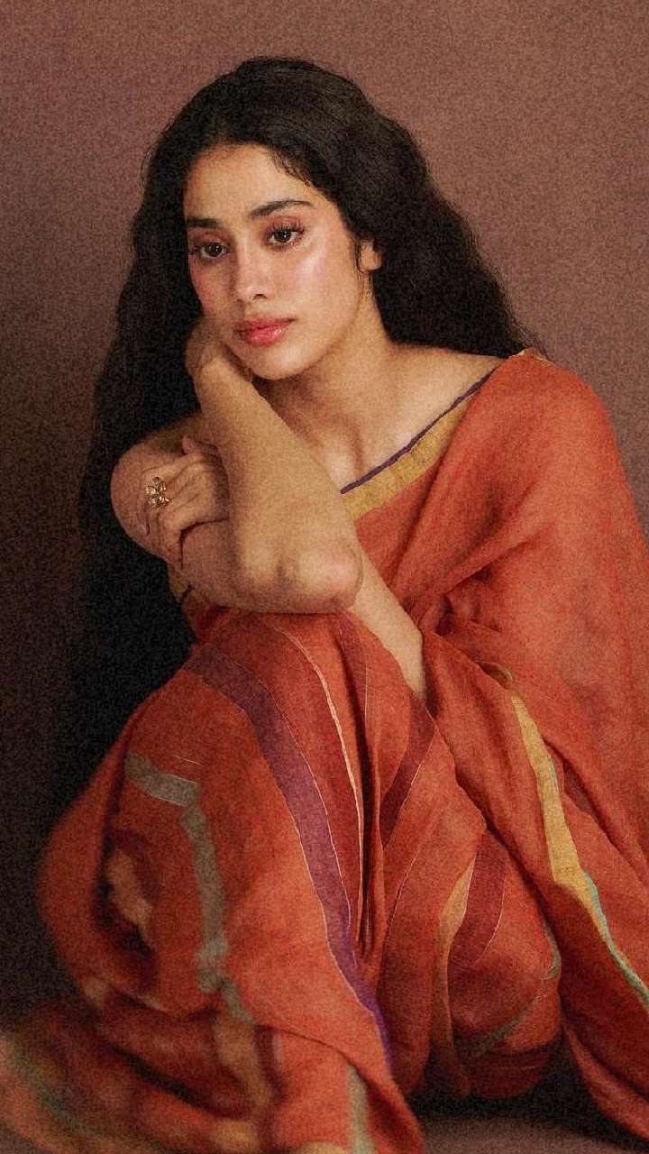 આ રેડ પ્લેન સાડીમાં એક્ટ્રેસનો ગ્લેમર લુક જોઈ શકાય છે. ફેન્સ પણ જ્હાન્વીના દરેક સાડી લુક ખૂબ જ પસંદ કરે છે.