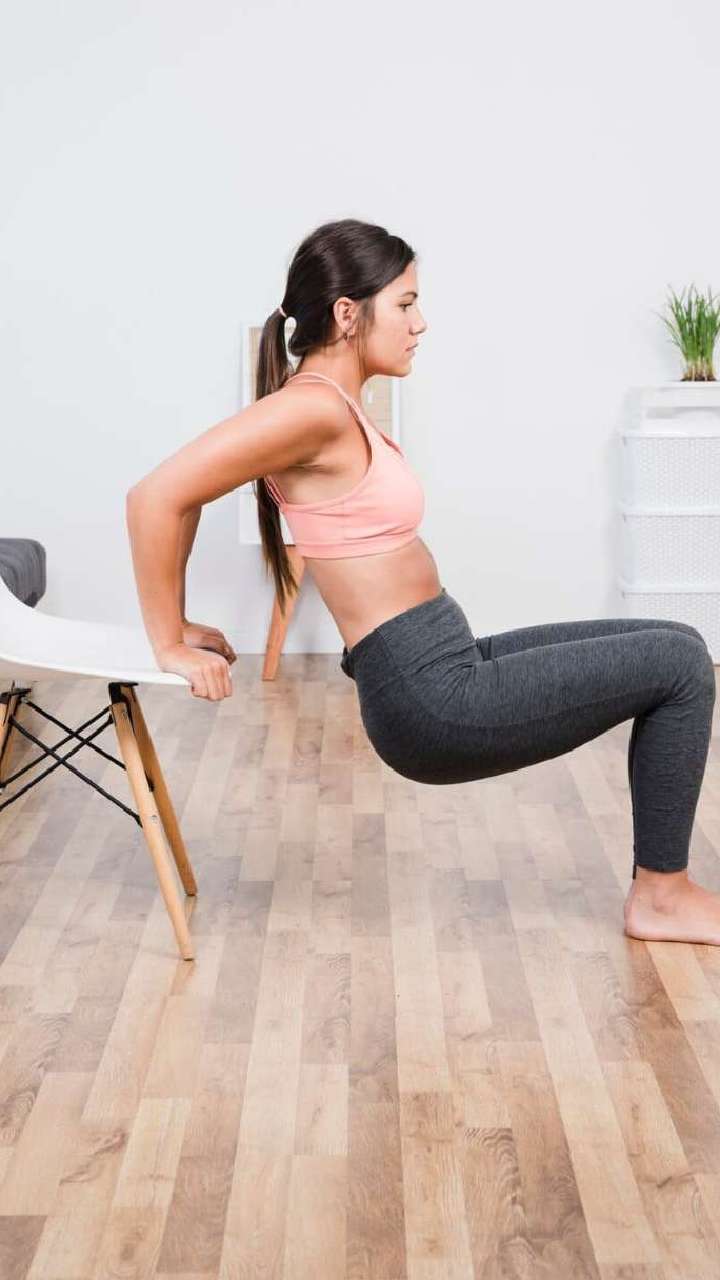 બંને હાથ વડે ખુરશીને મજબૂત રીત પકડી રાખો અને પછી શરીરને સીધું કરો અને કોણીને વાળો, હવે પુશઅપ્સ કરવાનું શરૂ કરો, આ પેટની ચરબી ઘટાડવામાં મદદ કરે છે.