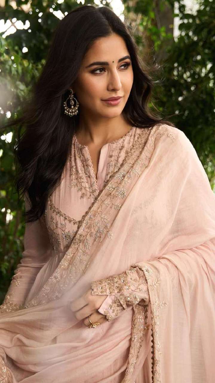 આ લાઈટ કલરના અનારકલી સૂટમાં કેટરીનાનો સાદગી ભર્યો અંદાજ જોઈ શકાય છે