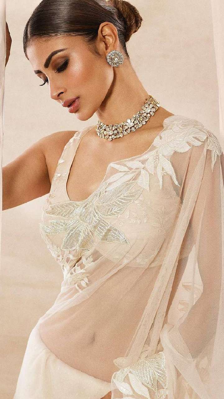 મૌની રોય ઓફ વ્હાઈટ ટ્રાન્સપેરેન્ટ સાડીમાં ઘણી જ ગોર્જિયસ લાગી રહી છે