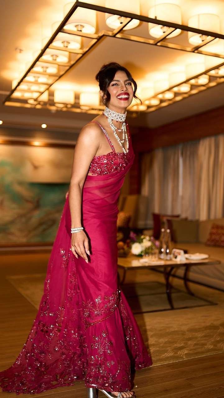 શો-સ્ટોપિંગ ગુલાબી સાડીમાં ભારતની દેશી ગર્લ પ્રિયંકા ચોપરા આકર્ષણનું કેન્દ્ર બની હતી