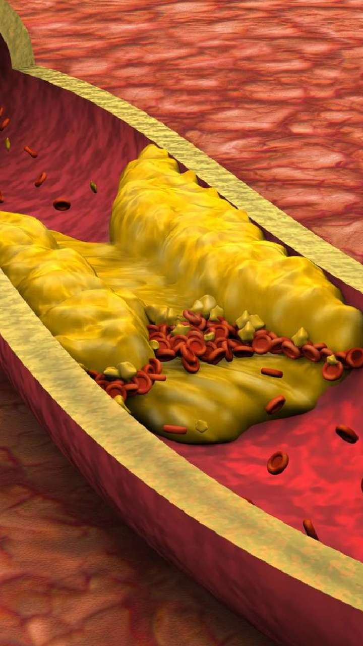 જયારે ધમનીઓમા કોલેસ્ટ્રોલનું પ્રમાણ વધે છે ત્યારે લોહીની પરિભ્રમણમા અડચણ ઊભી થાય છે, જેની નકારાત્મક અસર હૃદય પર પડે છે