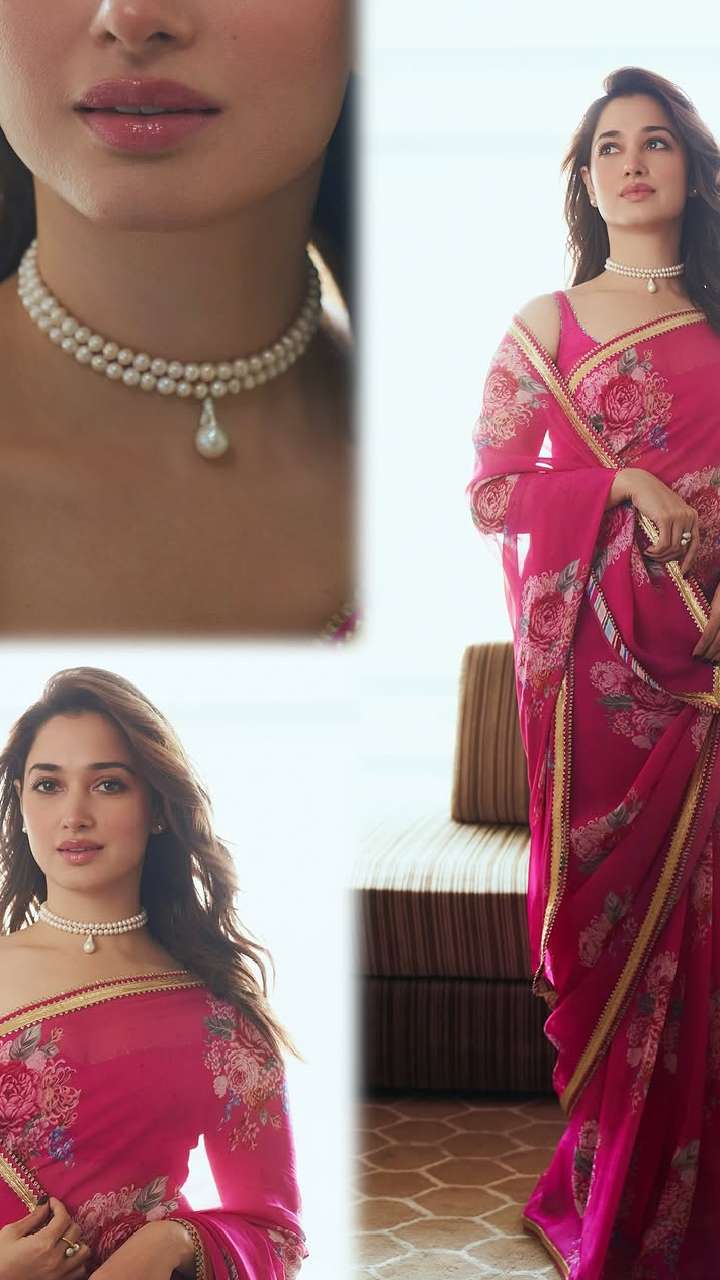 પિંક સાડીમાં તમન્ના ભાટિયા સુંદર લાગી રહી છે.